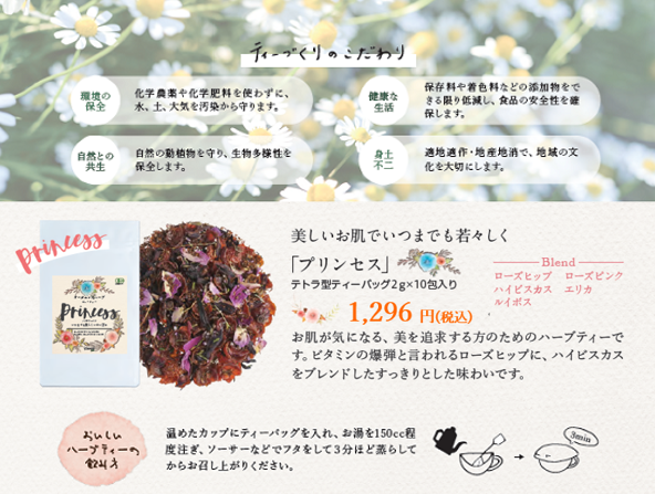 お肌が気になる、美を追求する方にお勧め。ビタミンの爆弾と言われるローズヒップに、ハイビスカスをブレンドしたすっきりした味わいです。